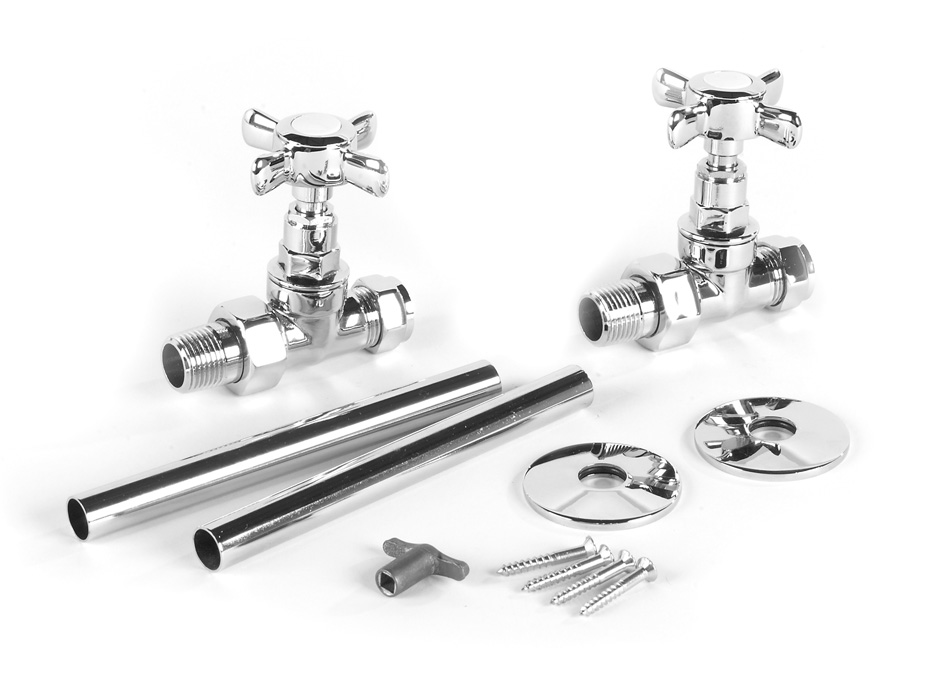 These traditonal Chrome inline valves give you the option to connect from a different angle. The straight crosshead valves design will not only complement your chosen radiator or towel rail but will enhance any period setting. Each pair of traditional straight valves comes with a full installation kit for a perfect finish.